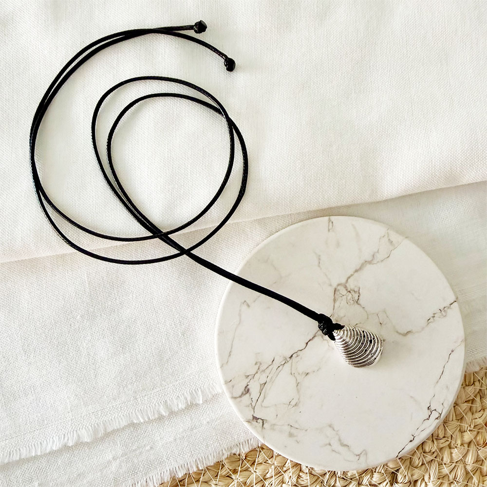 Collares, Collares, Hombre, MujerJapamala o yapa mala es una sarta de 108 cuentas esféricas, generalmente de madera o piedras naturales, usada en el hinduismo para recitar mantras o el nombre o los nombres de una deidad. Collar en piedra azabache negro, chaquiras checas negras, ojo turco en cristal Hindú y pompón en hilos de seda rojo. Base en guaya metálica. MEDIDAS : Estándar. COLECCIÓN: (+) ENERGÍA – JAPAMALA Producto hecho 100 a mano en Colombia.$75,000.00 -