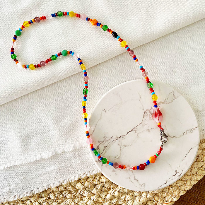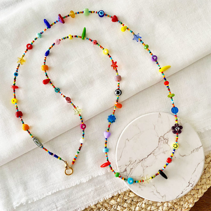 Collares, Collares, Hombre, Lo último, MujerCollar en base guaya metálica, mix de chaquiras checas y multidijes en diferentes materiales, acrílico, cristales, muranos, piedras naturales, vidrios y azabaches. COLECCIÓN: PARTY CHARMS. Cuidados: Para una mayor durabilidad de nuestras piezas, se debe evitar el contacto con: Agua de Mar, piscina, cremas, perfumes, alcohol y cualquier tipo de líquidos que puedan deteriorarla. Cada vez que se use se recomienda limpiar con paño suave y seco. Producto hecho 100% a mano en Colombia.$88,000.00 -