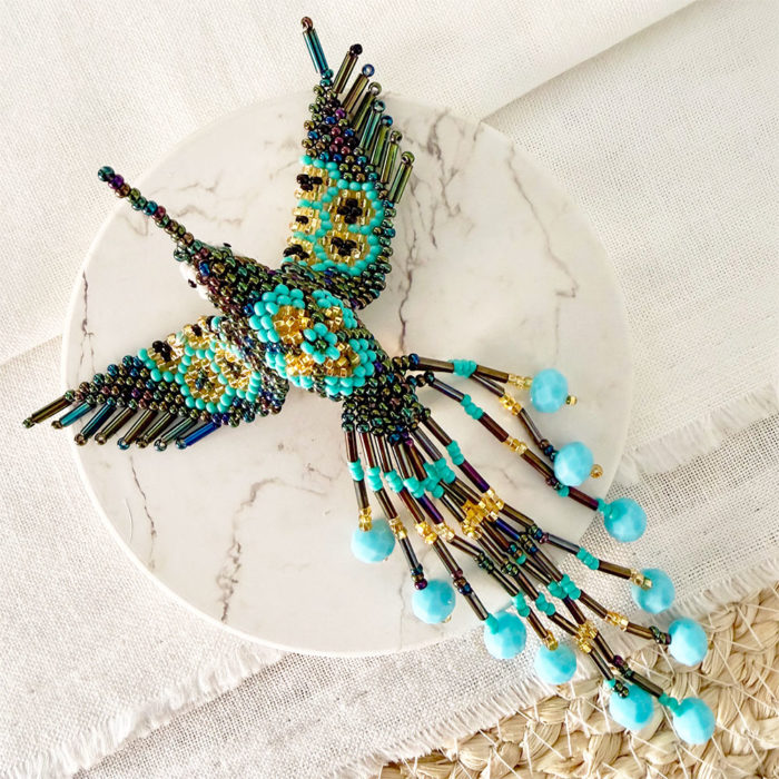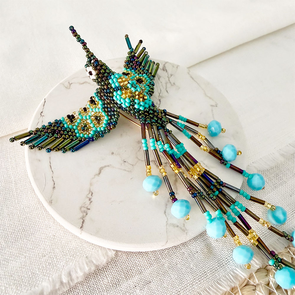 Lo último, PINESPin prendedor en forma de Colibrí, tejido en chaquiras mini checas en diferentes tonos por manos artesanas de nuestra cultura embera del departamento del Putumayo. Cuidados: Para una mayor durabilidad de nuestras piezas, se debe evitar el contacto directo con: Agua de Mar, piscina, cremas, perfumes, alcohol y cualquier tipo de líquidos que puedan deteriorarla. Cada vez que se use se recomienda limpiar con paño suave y seco. A mayor cuidado, mayor durabilidad. Producto hecho 100% a mano en COLOMBIA.$95,000.00 -