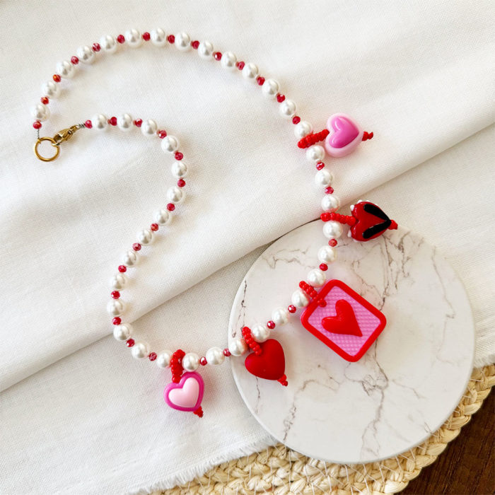 Collares, Lo último, MujerCollar largo, base en micro cordón de seda, cristales facetados de murano transparentes, corazones en acrílico rojo, mix de charquiras checas en diferentes tonos, cruz y crucero de la sagrada familia en zamack italiana. Cuidados: Para una mayor durabilidad de nuestras piezas, se debe evitar el contacto con: Agua de Mar, piscina, cremas, perfumes, alcohol y cualquier tipo de líquidos que puedan deteriorarla. Cada vez que se use se recomienda limpiar con paño suave y seco y en este caso mantener colgado, no dormir con el puesto y no mezclar al guardarse con otras piezas, podría enredarse o deformarse. COLECCIÓN: COLOMBIAN LOVERS. Producto hecho 100% a mano en Colombia.$85,000.00 -