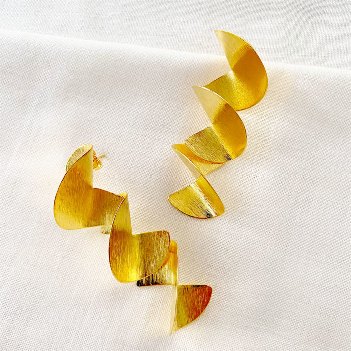 Aretes, Lo último, Mujer$55,000.00Aretes en base bronce con baño en oro dorado, calado y texturizado a mano, sistema de topo con pin. MEDIDAS: 20 mm. aproximadamente. COLECCIÓN: CALA Cuidados: Para una mayor durabilidad de nuestras piezas, se debe evitar el contacto con: Agua de Mar, piscina, cremas, perfumes, alcohol y cualquier tipo de líquidos que puedan deteriorarla. Cada vez que se use se recomienda limpiar con paño suave y seco. Producto hecho 100% a mano en Colombia. -
