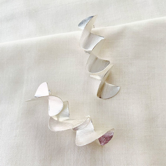 Aretes, Lo último, MujerAretes base bronce con baño en plata, calados y texturizados a mano. Sistema de topo con pin. MEDIDAS: 5 cm x 3 cm. COLECCIÓN: BOTÁNICA. Cuidados: Para una mayor durabilidad de nuestras piezas, se debe evitar el contacto con: Agua de Mar, piscina, cremas, perfumes, alcohol y cualquier tipo de líquidos que puedan deteriorarla. Cada vez que se use se recomienda limpiar con paño suave y seco. Producto hecho 100 a mano en Colombia.$78,000.00 -