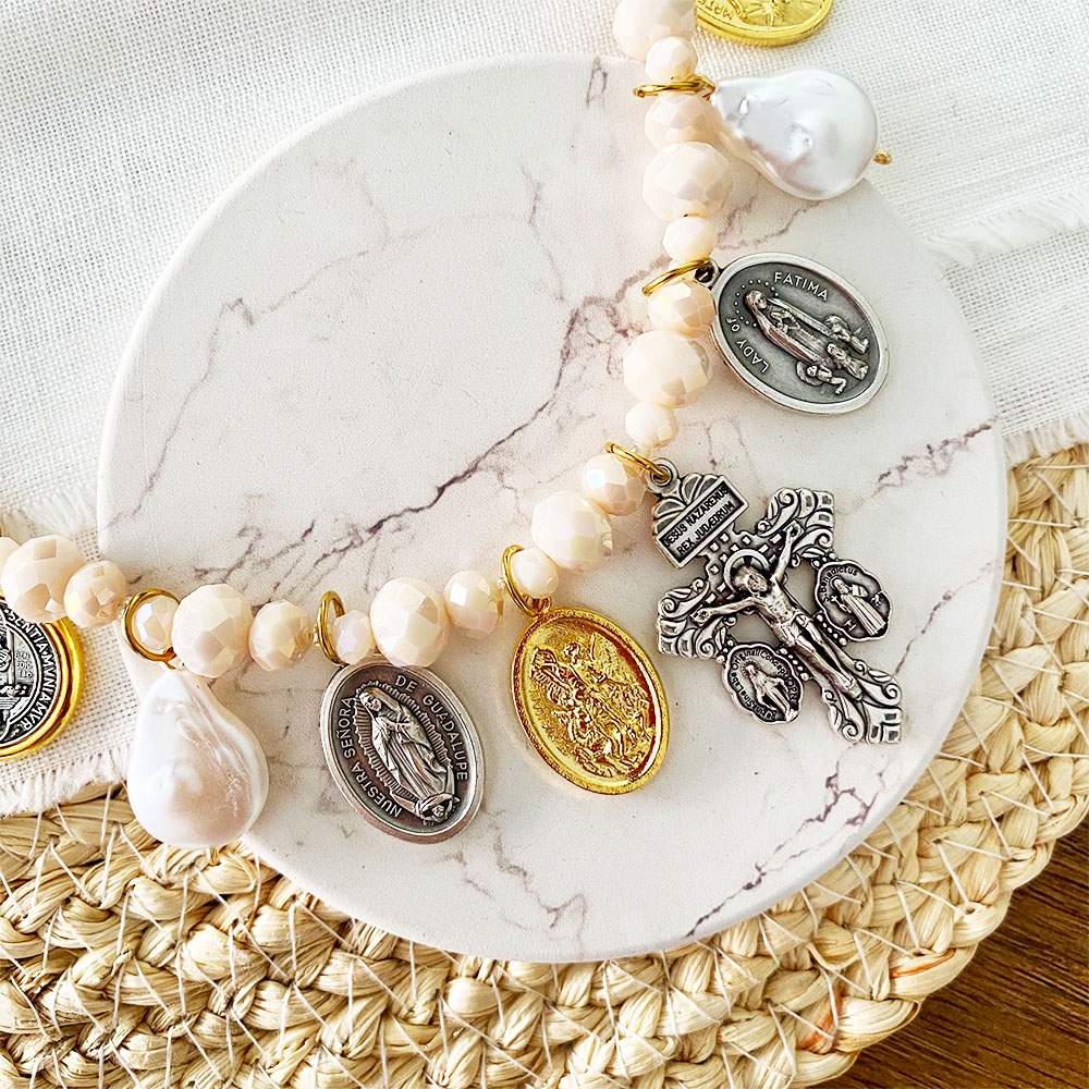 Collares, Lo último, MujerChoker o collar corto (gargantilla), base en guaya metálica, monedas en perlas shell (sintéticas) cristales de murano dorados, broche, argolla y extensión en acero dorado. MEDIDAS: 38 cm + 10 cm de extensión para ajuste aproximadamente. COLECCIÓN: CALA / MAMÁS DE LAVALLE Cuidados: Para una mayor durabilidad de nuestras piezas, se debe evitar el contacto directo con: Agua de Mar, piscina, cremas, perfumes, alcohol y cualquier tipo de líquidos que puedan deteriorarla. Cada vez que se use se recomienda limpiar con paño suave y seco. A mayor cuidado, mayor durabilidad. Producto hecho 100% a mano en COLOMBIA.$90,000.00 -