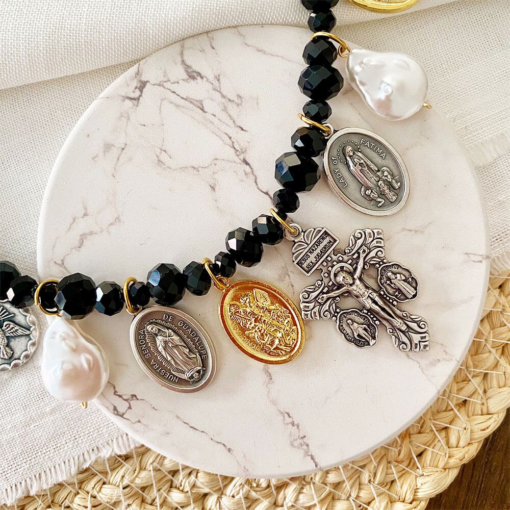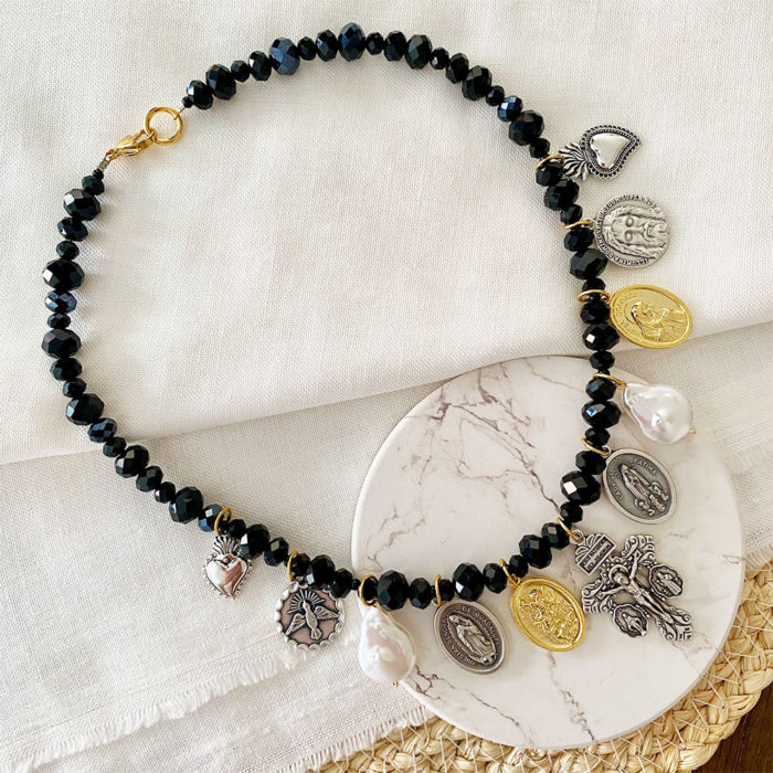 Collares, Lo último, Mujer, SALECollar corto en base guaya metálica, mix de piedras, turquesa africana y chaquiras checas, dije en forma de medalla en bronce con baño en oro y microcircones, broche y argolla en acero dorado. MEDIDAS: 50 cm, aproximadamente. COLECCIÓN: PROUD / PRIDE Cuidados: Para una mayor durabilidad de nuestras piezas, se debe evitar el contacto directo con: Agua de Mar, piscina, cremas, perfumes, alcohol y cualquier tipo de líquidos que puedan deteriorarla. Cada vez que se use se recomienda limpiar con paño suave y seco. A mayor cuidado, mayor durabilidad. Producto hecho 100% a mano en COLOMBIA.$85,000.00$55,000.00 -