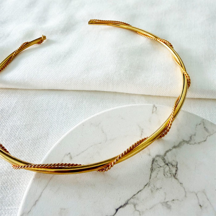 Collares, MujerChoker base en bronce con baño en oro dorado de 24 quilates. Sistema de Presión. MEDIDAS: estándar, calibre 4 mm. COLECCIÓN HOOPS Cuidados: Para una mayor durabilidad de nuestras piezas, se debe evitar el contacto directo con: Agua de Mar, piscina, cremas, perfumes, alcohol y cualquier tipo de líquidos que puedan deteriorarla. Cada vez que se use se recomienda limpiar con paño suave y seco. A mayor cuidado, mayor durabilidad. Producto hecho 100% a mano en COLOMBIA.$75,000.00 -