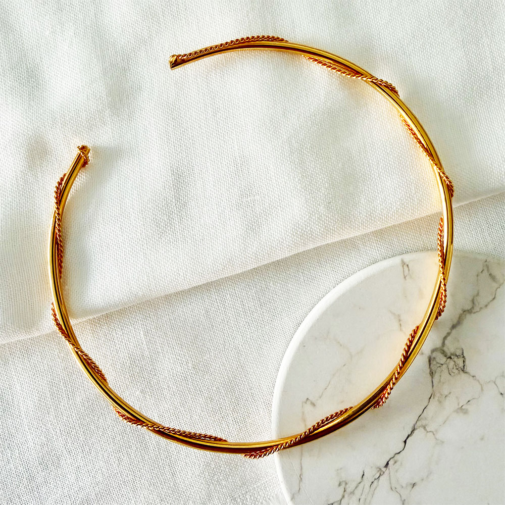 Collares, MujerChoker base en bronce con baño en oro dorado de 24 quilates. Sistema de topo con pin. MEDIDAS: estandar, calibre 4 mm. COLECCIÓN HOOPS Producto hecho 100% a mano en COLOMBIA.$90,000.00 -
