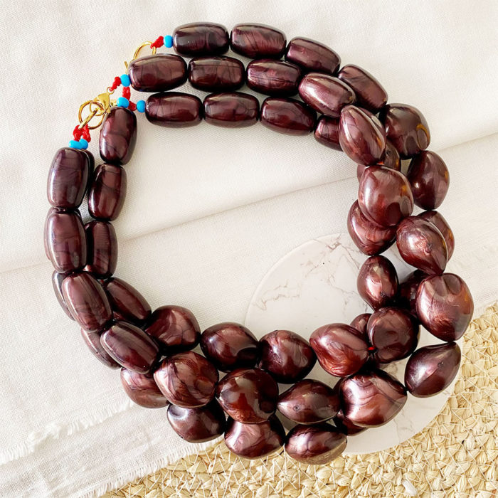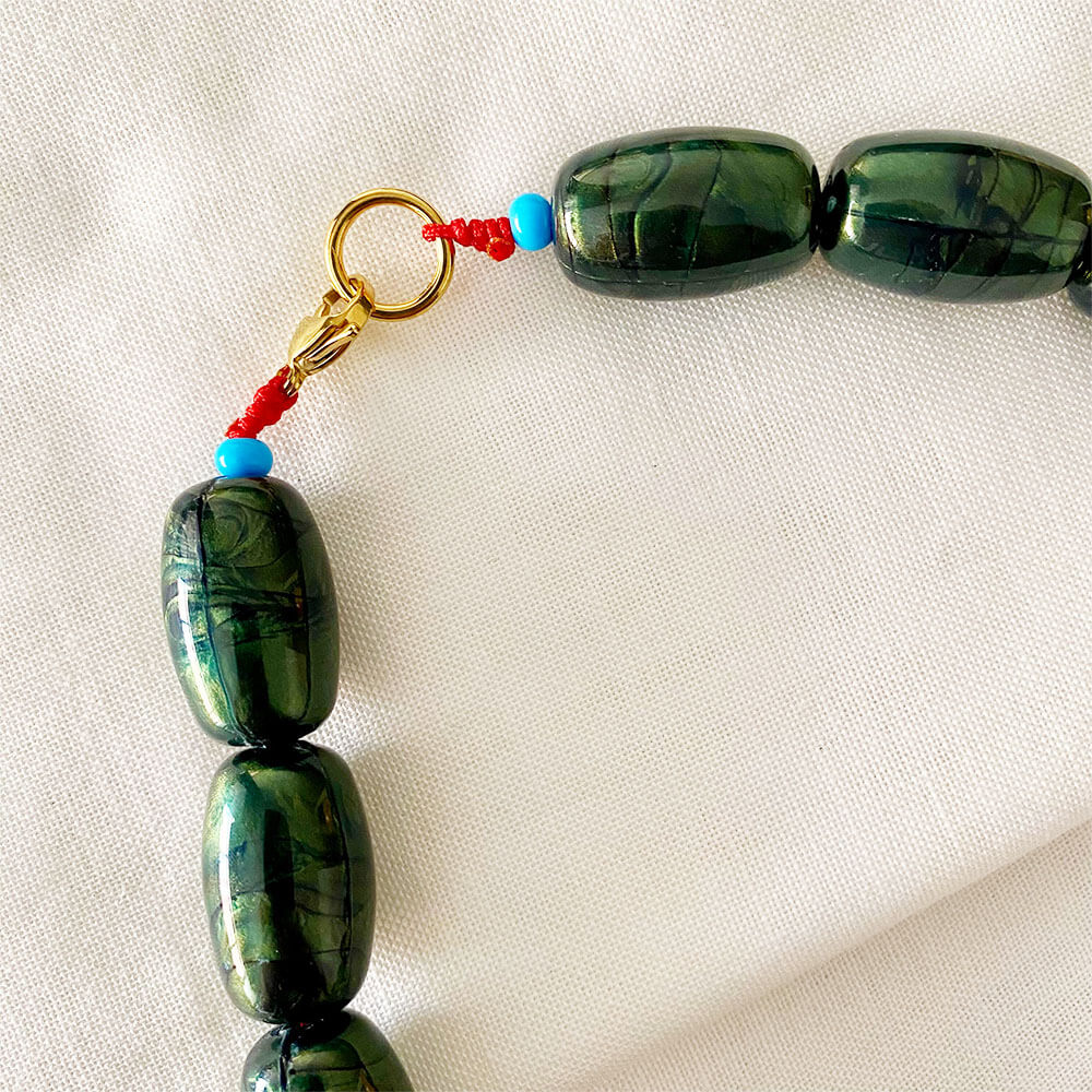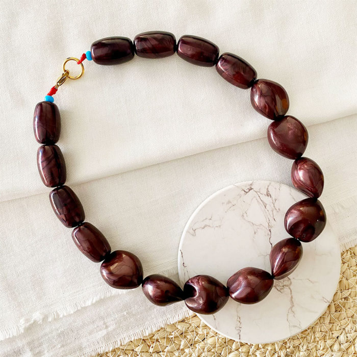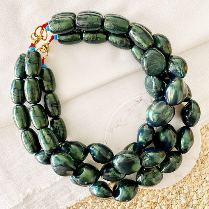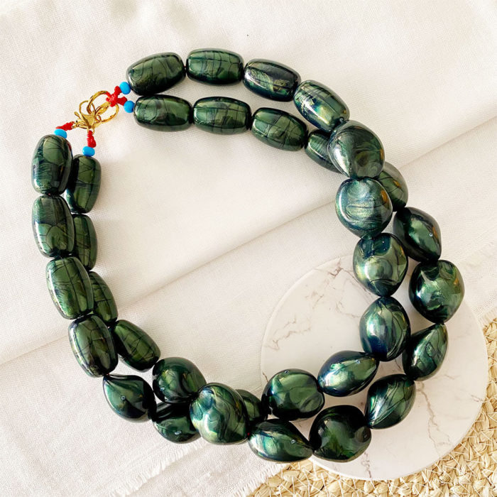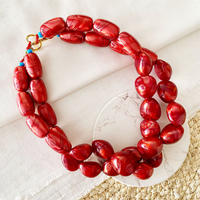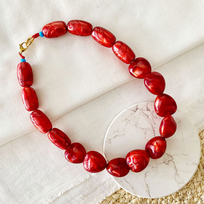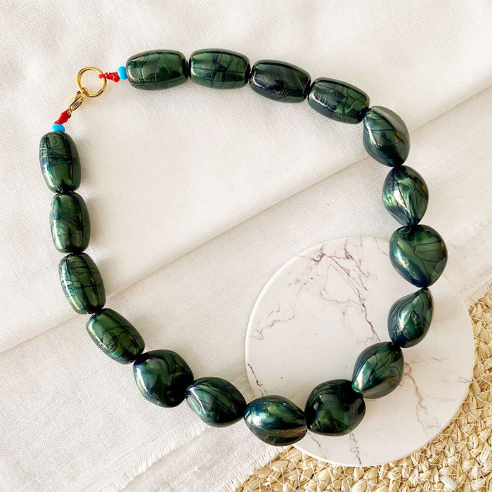 Collares, Lo último, MujerCollar corto en base cordón, esferas irregulares en Acrílico perlado, broche en bronce con baño en oro. MEDIDAS: 45 cm. Aproximadamente COLECCIÓN: BRIGHT LIGTH. Cuidados: Para una mayor durabilidad de nuestras piezas, se debe evitar el contacto directo con: Agua de Mar, piscina, cremas, perfumes, alcohol y cualquier tipo de líquidos que puedan deteriorarla. Cada vez que se use se recomienda limpiar con paño suave y seco. A mayor cuidado, mayor durabilidad. Producto hecho 100% a mano en COLOMBIA.$55,000.00 -