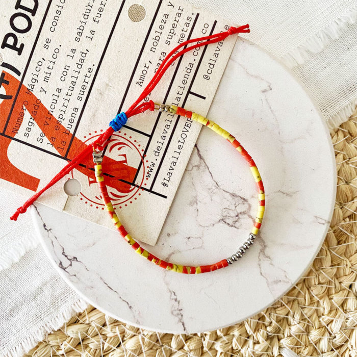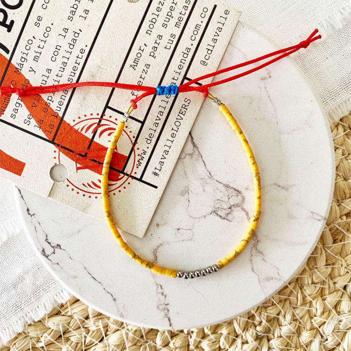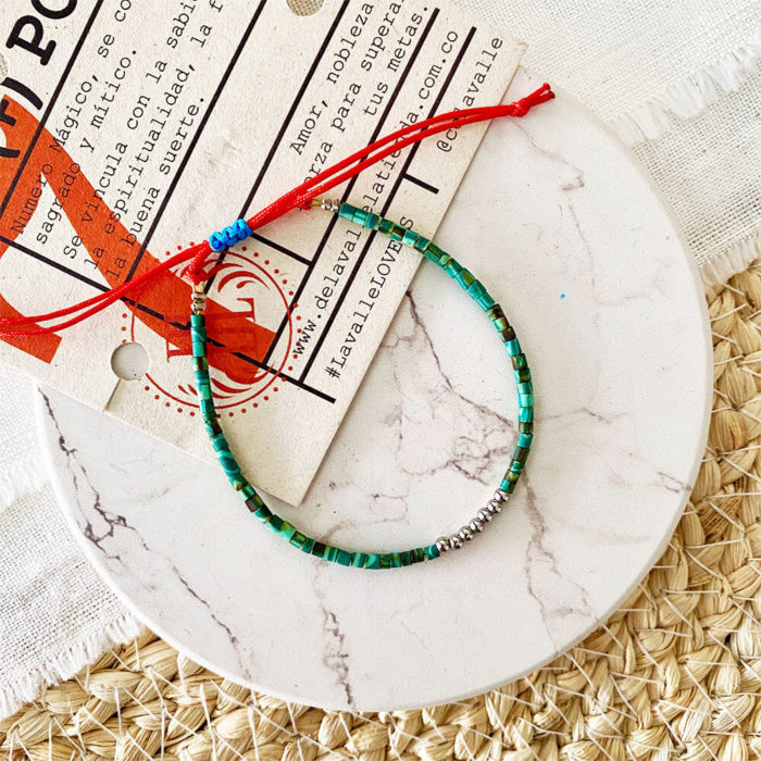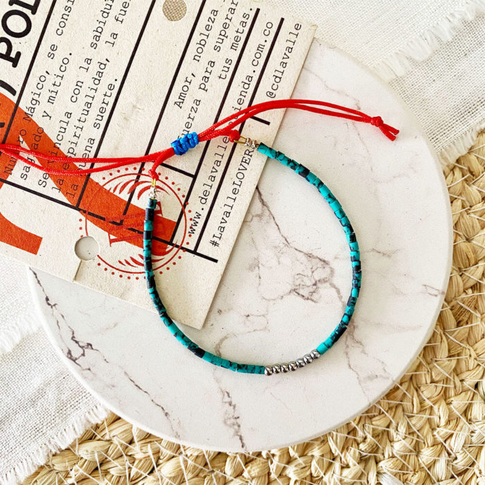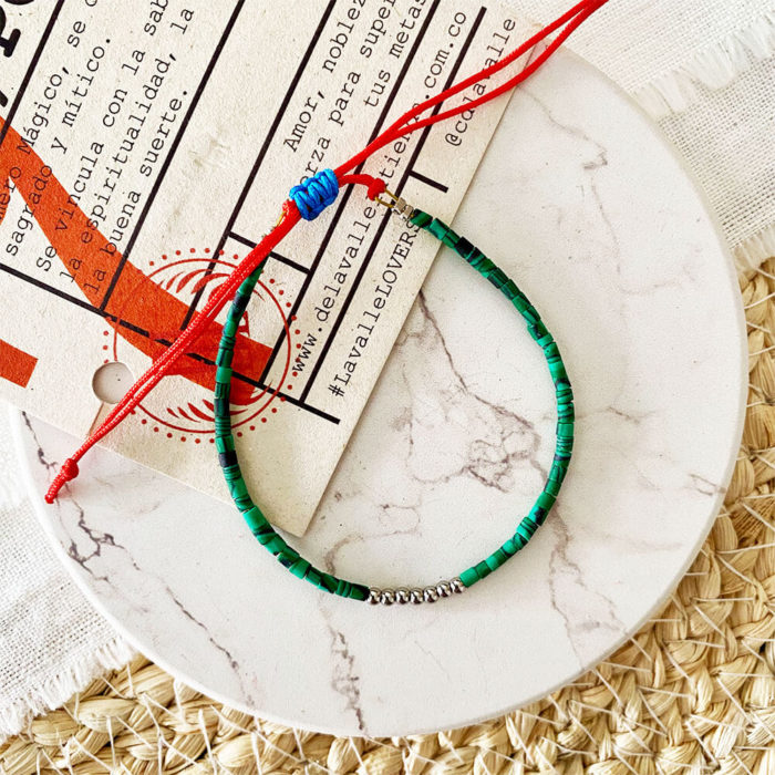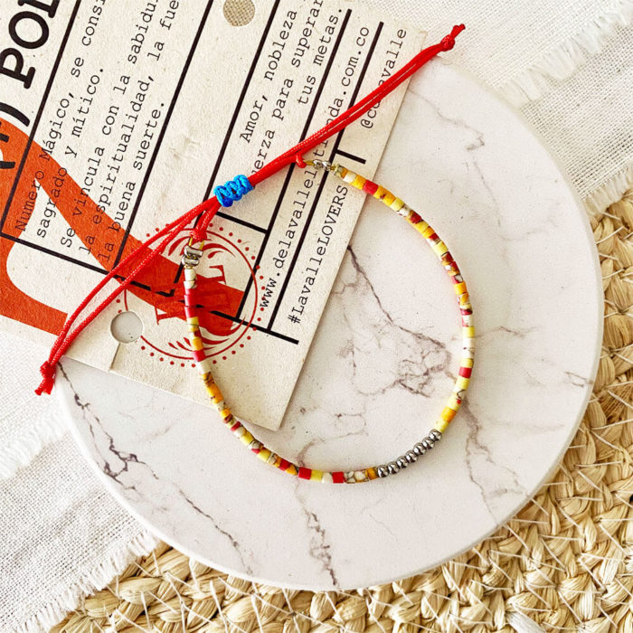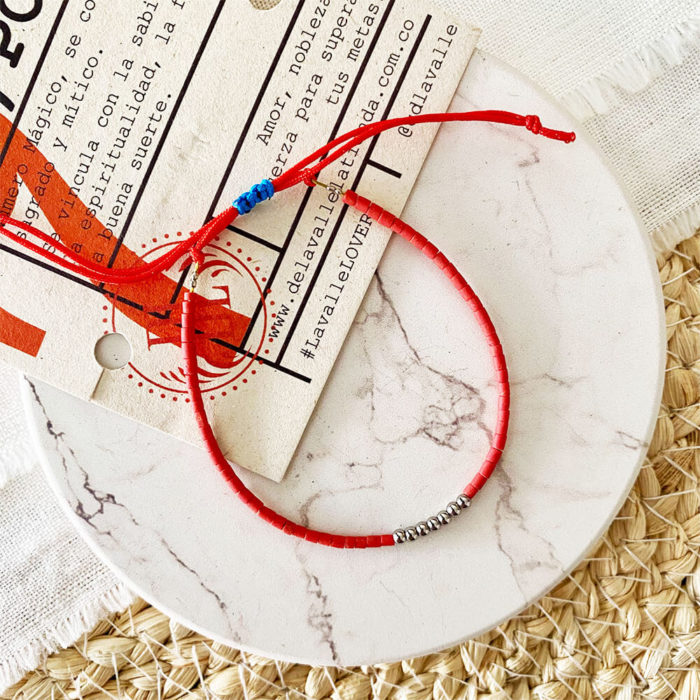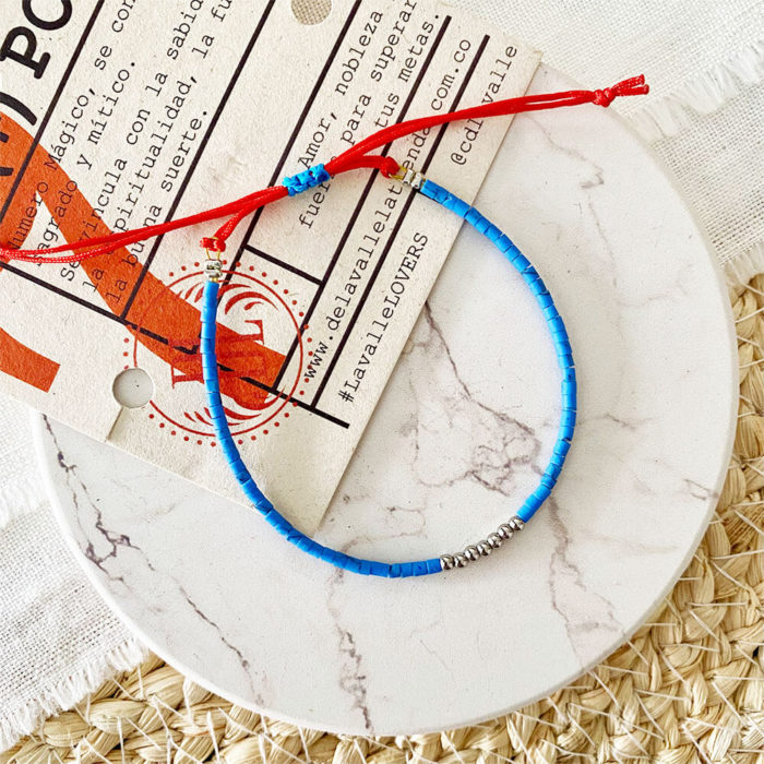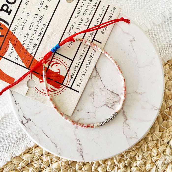 Hombre, Lo último, Mujer, Pulseras, PulserasManilla base en guaya metálica y micro cordón de seda rojo, chaquiras en ceramica Turca artesanal en diferentes tonos y 7 balines en acero plateado. Sistema de nudo corredizo para ajuste. MEDIDAS: Tamaño estándar, manilla con nudo para juste en tamaño. COLECCIÓN: SALEEM. El 7 es considerado un número mágico porque se compone del sagrado número 3 y del terrenal número 4. Así, de esta manera, establece un puente entre el cielo y la tierra. Aseguran que para Pitágoras el 7 era “el número perfecto”; Dante Alighieri lo usaba en sus obras; y la Biblia lo menciona con frecuencia. Cuidados: Para una mayor durabilidad de nuestras piezas, se debe evitar el contacto con: Agua de Mar, piscina, cremas, perfumes, alcohol y cualquier tipo de líquidos que puedan deteriorarla. Cada vez que se use se recomienda limpiar con paño suave y seco. Producto hecho 100% a mano en Colombia. Producto hecho 100% a mano en COLOMBIA.$45,000.00 -
