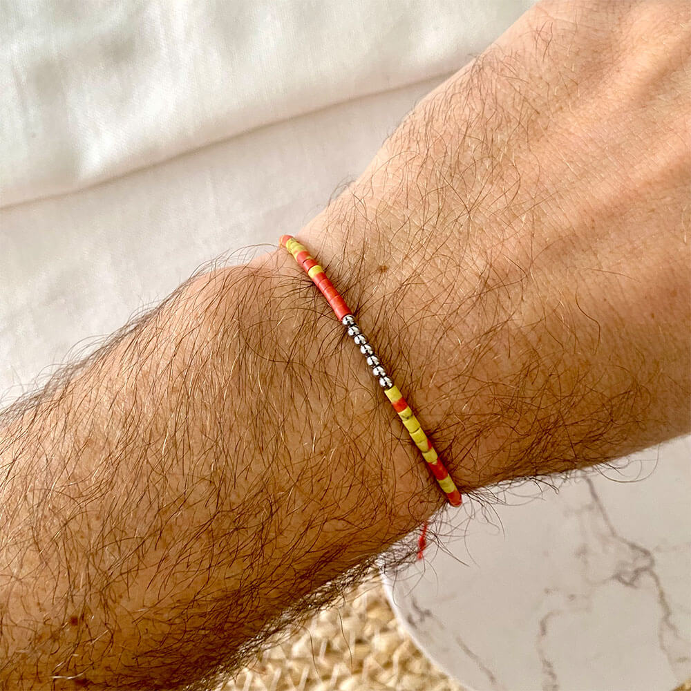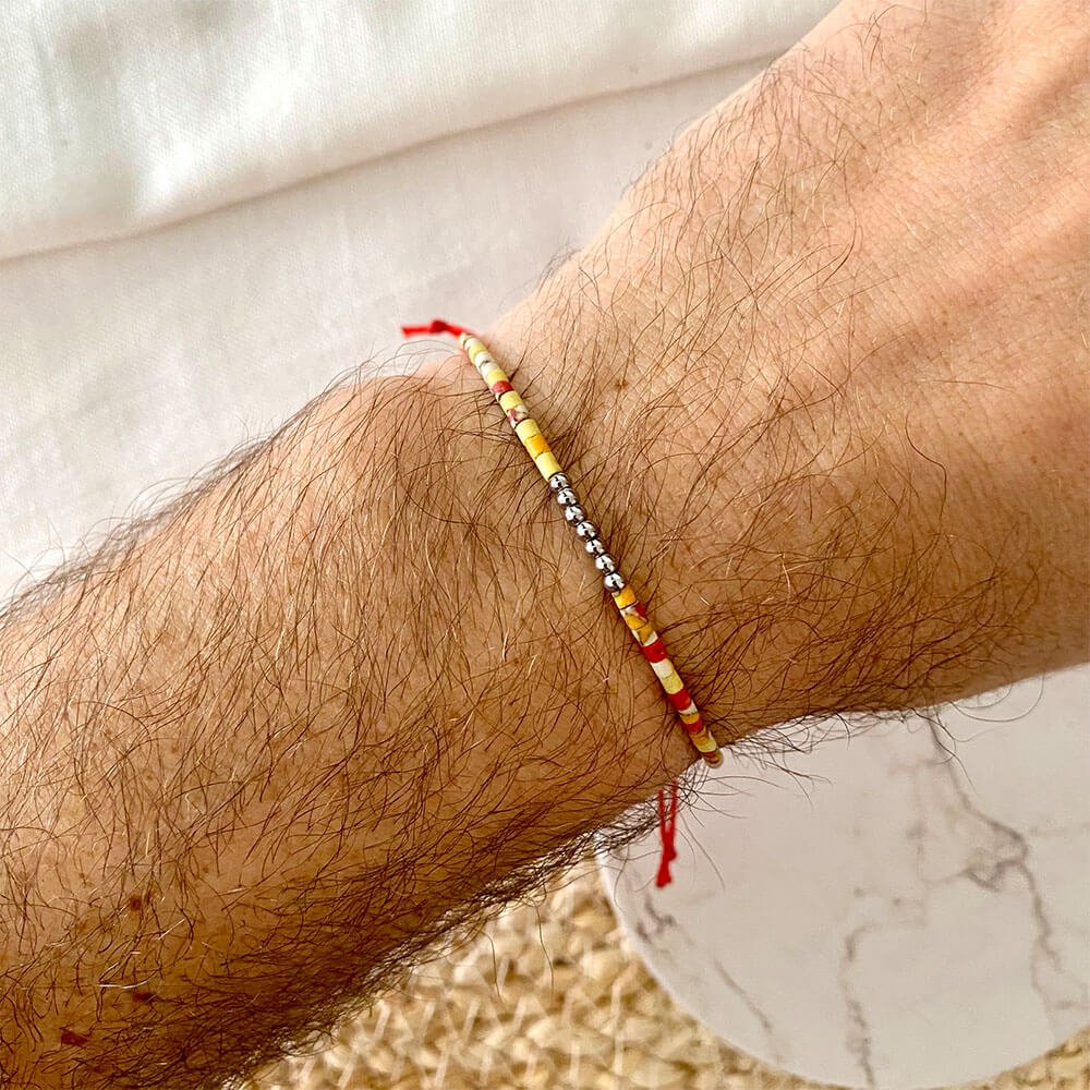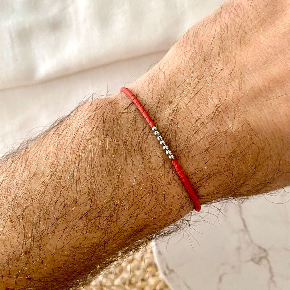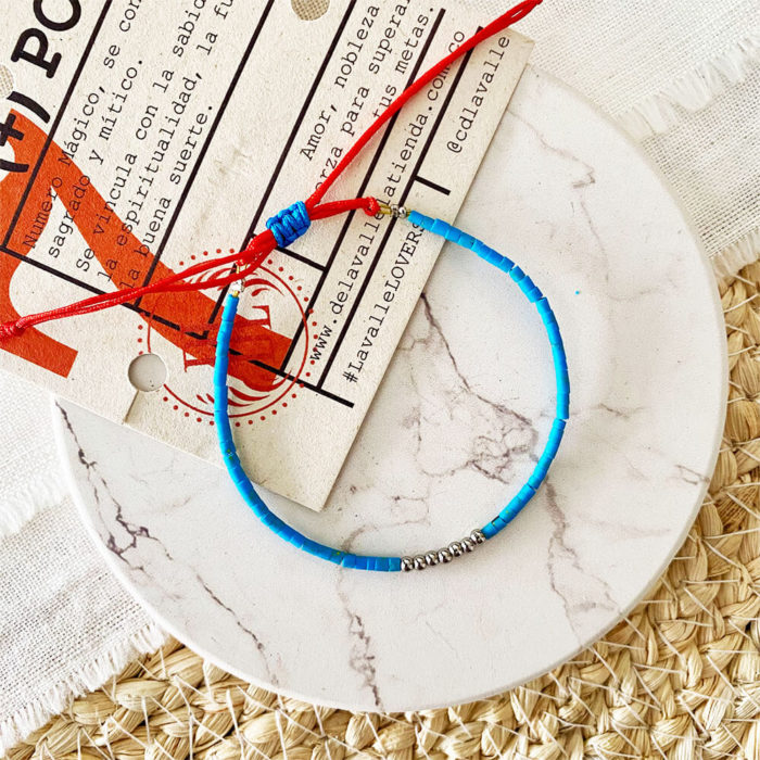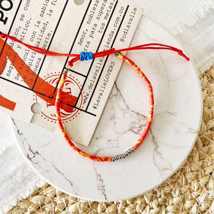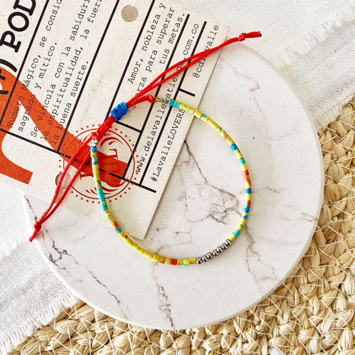 Hombre, Lo último, Mujer, Pulseras, PulserasManilla base en guaya metálica y micro cordón de seda rojo, chaquiras en ceramica Turca artesanal en diferentes tonos y 7 balines en acero plateado. Sistema de nudo corredizo para ajuste. MEDIDAS: Tamaño estándar, manilla con nudo para juste en tamaño. COLECCIÓN: SALEEM. El 7 es considerado un número mágico porque se compone del sagrado número 3 y del terrenal número 4. Así, de esta manera, establece un puente entre el cielo y la tierra. Aseguran que para Pitágoras el 7 era “el número perfecto”; Dante Alighieri lo usaba en sus obras; y la Biblia lo menciona con frecuencia. Cuidados: Para una mayor durabilidad de nuestras piezas, se debe evitar el contacto con: Agua de Mar, piscina, cremas, perfumes, alcohol y cualquier tipo de líquidos que puedan deteriorarla. Cada vez que se use se recomienda limpiar con paño suave y seco. Producto hecho 100% a mano en Colombia. Producto hecho 100% a mano en COLOMBIA.$45,000.00 -