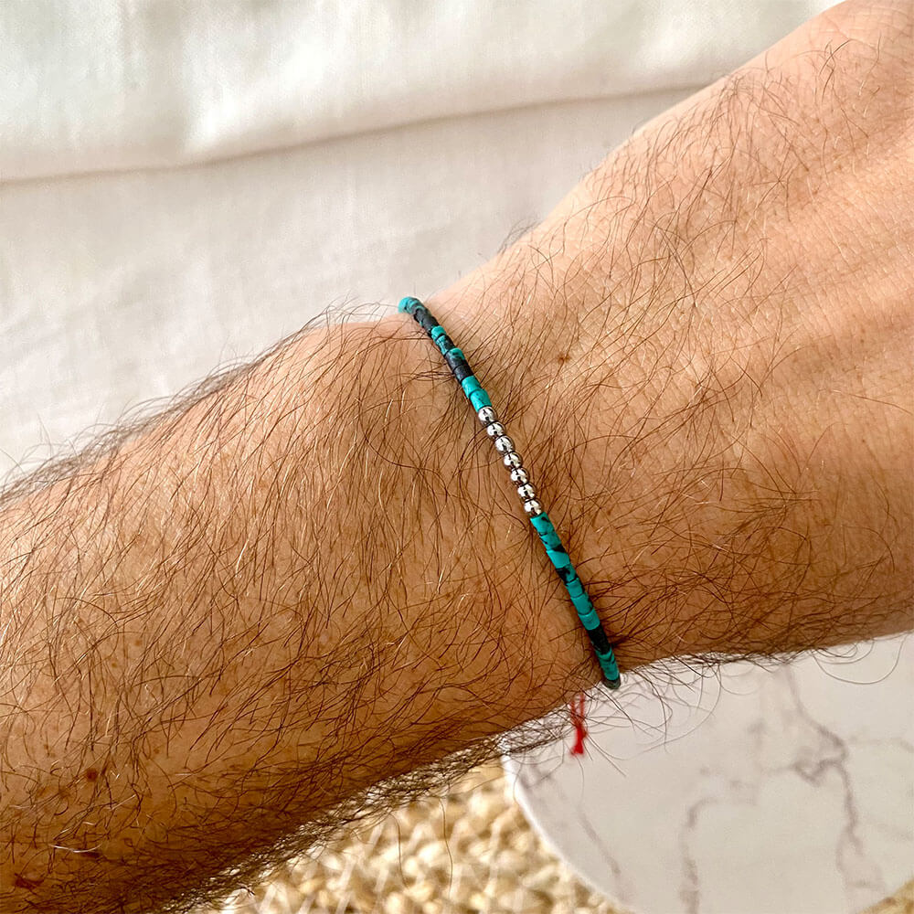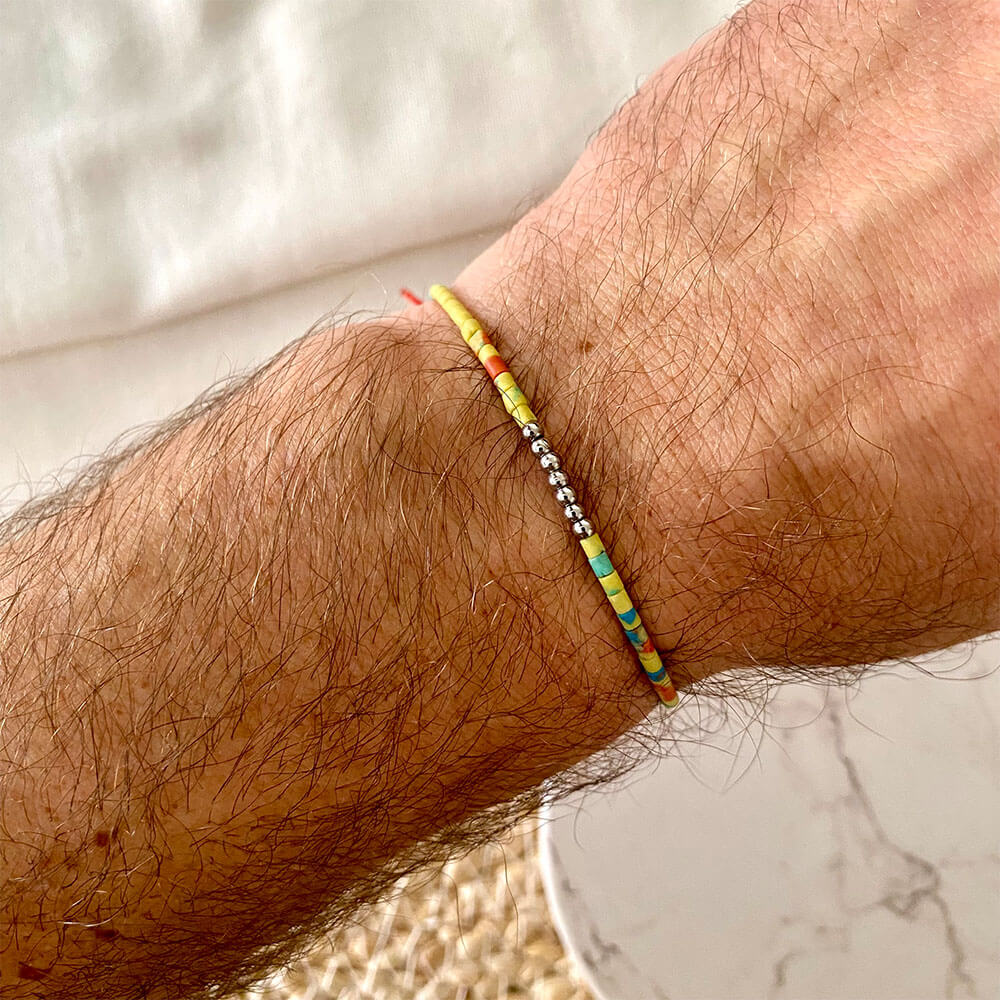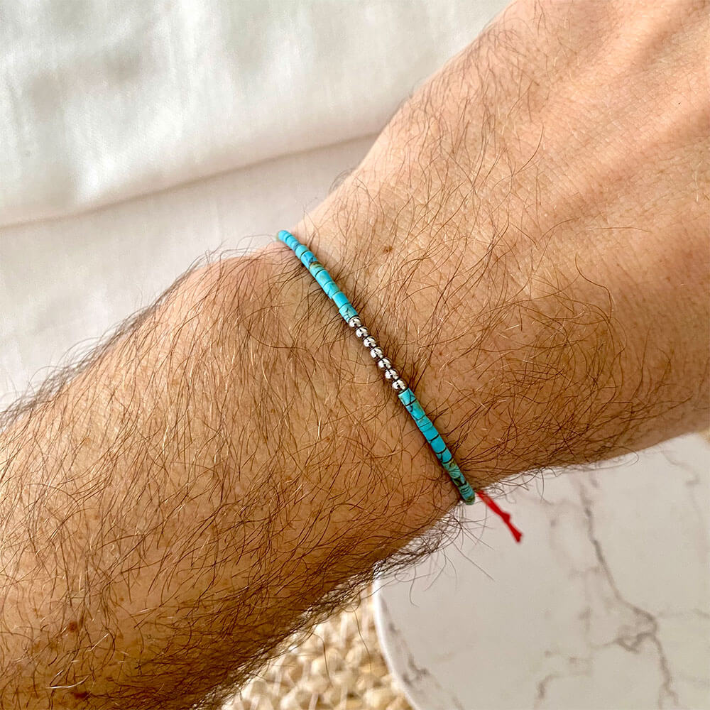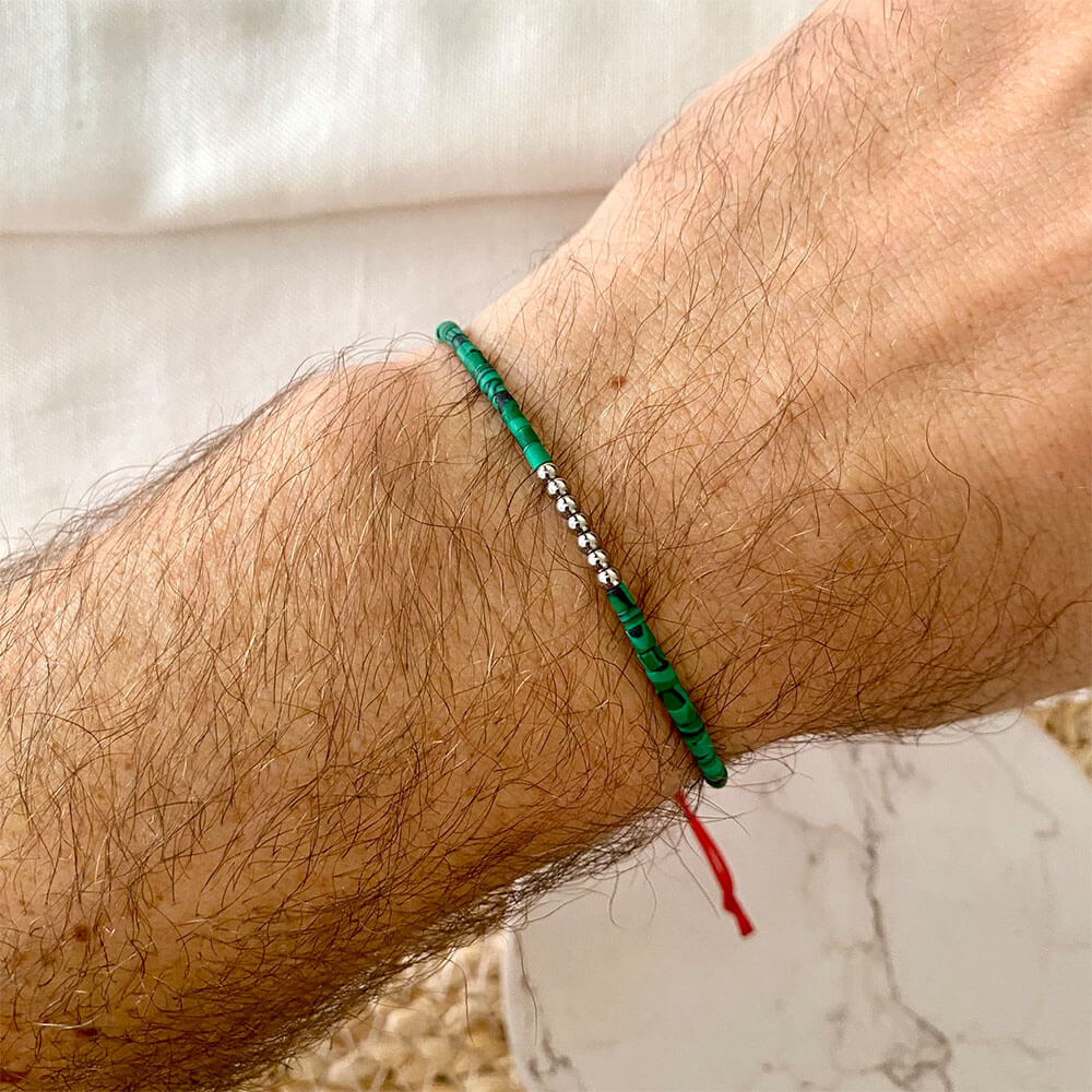 Hombre, Lo último, Mujer, Pulseras, PulserasManilla base en guaya metálica y micro cordón de seda rojo, chaquiras en ceramica Turca artesanal en diferentes tonos y 7 balines en acero plateado. Sistema de nudo corredizo para ajuste. MEDIDAS: Tamaño estándar, manilla con nudo para juste en tamaño. COLECCIÓN: SALEEM. El 7 es considerado un número mágico porque se compone del sagrado número 3 y del terrenal número 4. Así, de esta manera, establece un puente entre el cielo y la tierra. Aseguran que para Pitágoras el 7 era “el número perfecto”; Dante Alighieri lo usaba en sus obras; y la Biblia lo menciona con frecuencia. Cuidados: Para una mayor durabilidad de nuestras piezas, se debe evitar el contacto con: Agua de Mar, piscina, cremas, perfumes, alcohol y cualquier tipo de líquidos que puedan deteriorarla. Cada vez que se use se recomienda limpiar con paño suave y seco. Producto hecho 100% a mano en Colombia. Producto hecho 100% a mano en COLOMBIA.$45,000.00 -