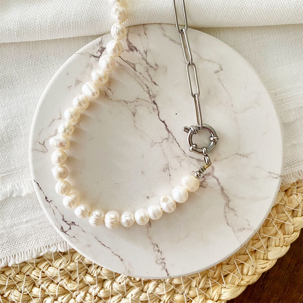 COLLAR PERLAS MINI Y ESLABONES PLATEADOS