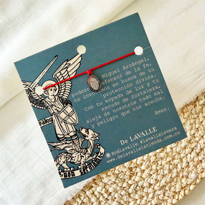 Hombre, Mujer, Pulseras, Pulseras$15,000.00Manilla en micro cordon rojo sencilla, dije en forma de medalla de San Miguel Arcángel en acero plateado, nudo corredizo ajustable. Serie de manillas especiales con significados. Símbolos tomados de diferentes culturas o religiones Producto hecho 100% a mano en COLOMBIA. -