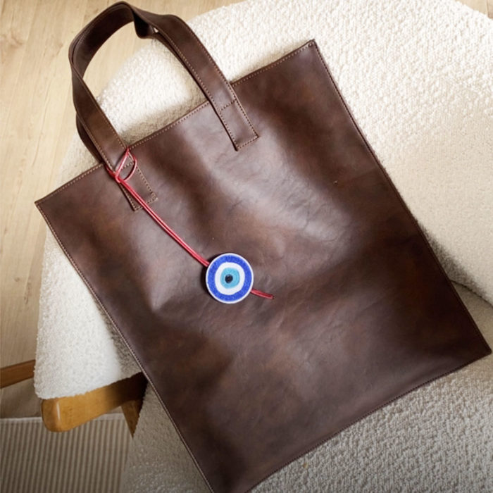 Accesorios, Accesorios, Hombre, Lo último, MujerBolsa de cuero vegano sintético, forro en tela anti fluido rojo, costuras en hilos de seda especiales. Todas nuestras tote bag son hechas 100% a mano en nuestro taller e incluyen charms en fieltro y cuero en forma de ojo turco. MEDIDAS: 40 cm de ancho x 45 cm de alto, sin fuelle, asas de 60 cm largo total. El cuero es un material natural que necesita respirar. Evitar contacto con humedad y la luz, mantener seco e hidratarlo eventualmente. Producto hecho 100 a mano en Colombia.$160,000.00 -