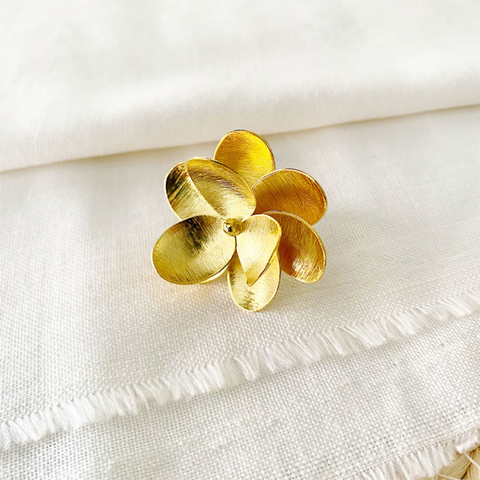 Anillos, Mujer$75,000.00Anillo delgado en media caña ajustable, base en bronce con baño en oro, petalos de flores calados y texturizada a mano. Medidas: Talla 6,5 abierto. Se ajusta hasta talla 8,5. COLECCIÓN: GARDEN Cuidados: Para una mayor durabilidad de nuestras piezas, se debe evitar el contacto con: Agua de Mar, piscina, cremas, perfumes, alcohol y cualquier tipo de líquidos que puedan deteriorarla. Cada vez que se use se recomienda limpiar con paño suave y seco. Producto hecho 100% a mano en COLOMBIA. -