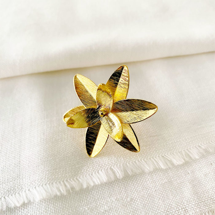 Anillos, Mujer$75,000.00Anillo delgado en media caña ajustable, base en bronce con baño en oro, petalos de flores calados y texturizada a mano. Medidas: Talla 6,5 abierto. Se ajusta hasta talla 8,5. COLECCIÓN: BOTÁNICA Cuidados: Para una mayor durabilidad de nuestras piezas, se debe evitar el contacto con: Agua de Mar, piscina, cremas, perfumes, alcohol y cualquier tipo de líquidos que puedan deteriorarla. Cada vez que se use se recomienda limpiar con paño suave y seco. Producto hecho 100% a mano en COLOMBIA. -