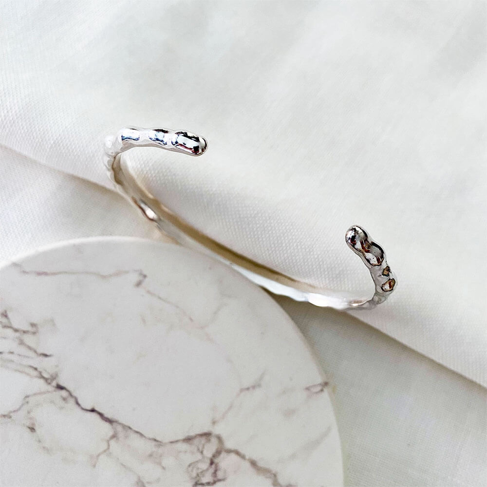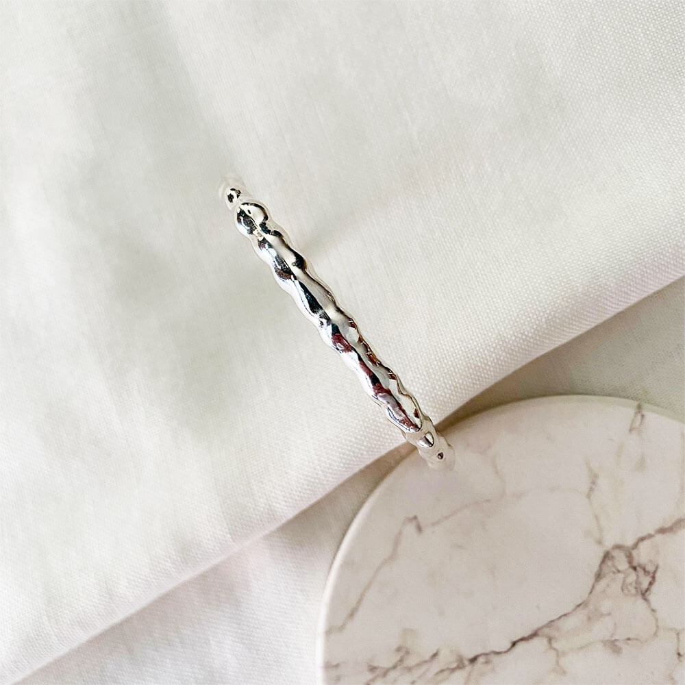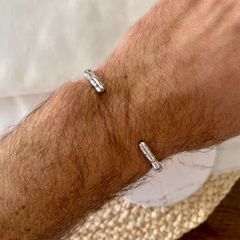 Brazalete abierto ajustable, base en zamack italiana con baño en plata ley 925.
