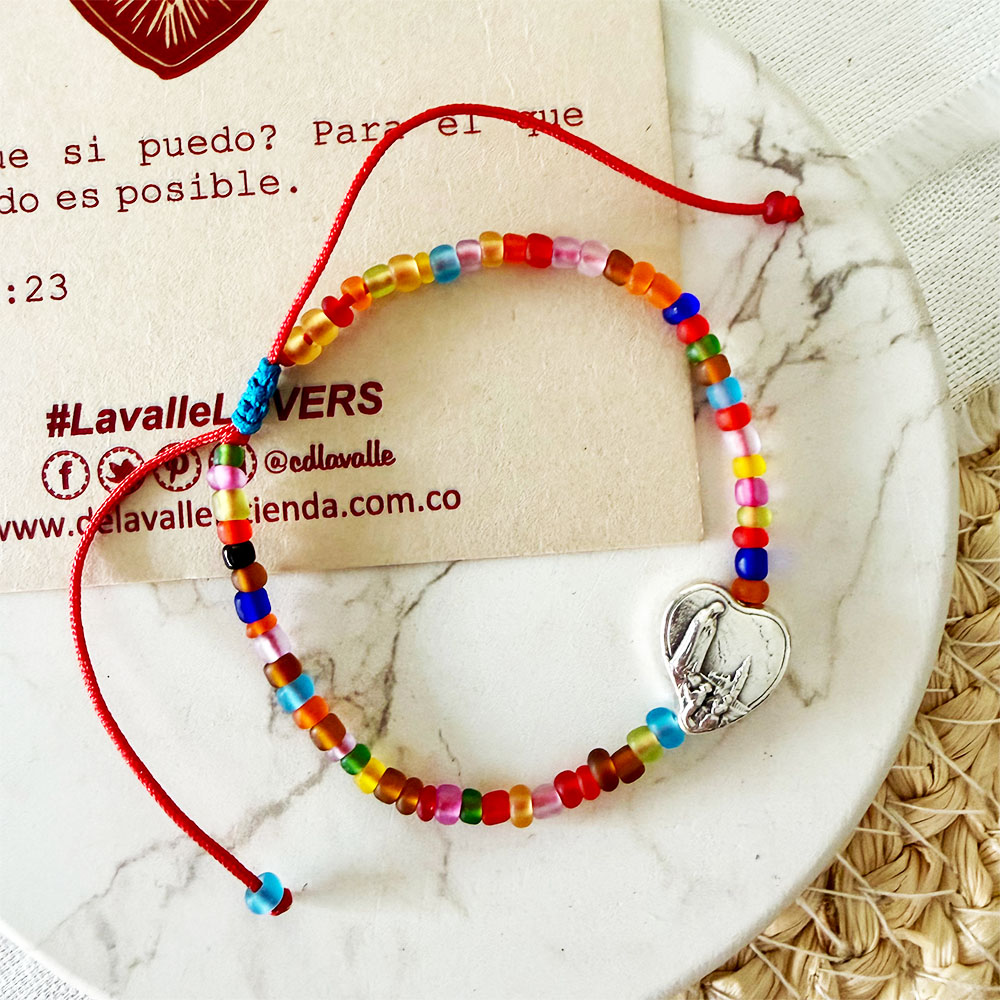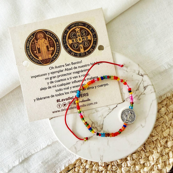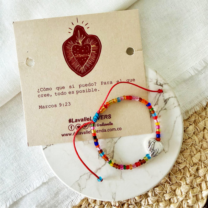 Manilla de micro cordon de seda rojo, chaquiras en mix de colores acabado opaco y medalla religiosa pasante en zamack plateada. Sistema de nudo corredizo para ajuste. MEDIDAS: Tamaño estándar, manilla con nudo para juste en tamaño. COLECCIÓN: RELICARIO. El 7 es considerado un número mágico porque se compone del sagrado número 3 y del terrenal número 4. Así, de esta manera, establece un puente entre el cielo y la tierra. Aseguran que para Pitágoras el 7 era “el número perfecto”; Dante Alighieri lo usaba en sus obras; y la Biblia lo menciona con frecuencia. Cuidados: Para una mayor durabilidad de nuestras piezas, se debe evitar el contacto con: Agua de Mar, piscina, cremas, perfumes, alcohol y cualquier tipo de líquidos que puedan deteriorarla. Cada vez que se use se recomienda limpiar con paño suave y seco. Producto hecho 100% a mano en Colombia. Producto hecho 100% a mano en COLOMBIA.
