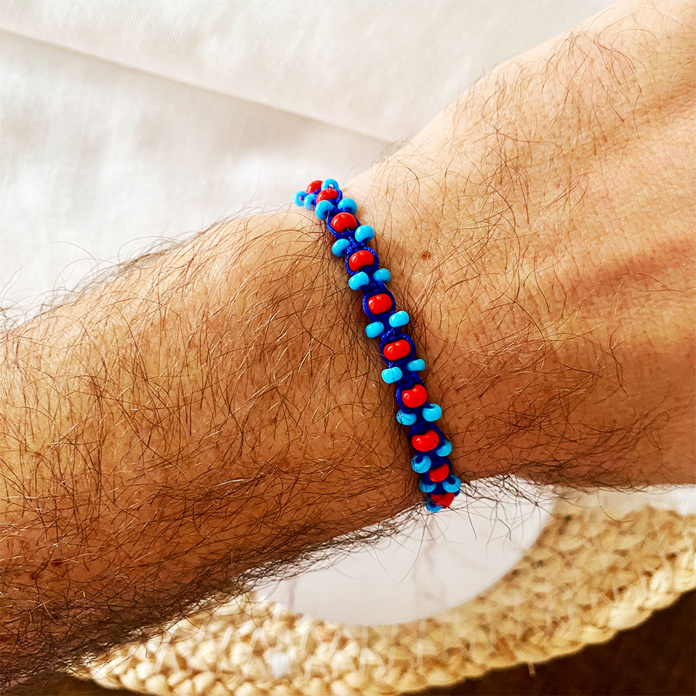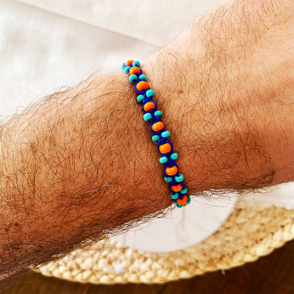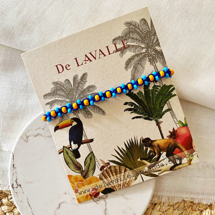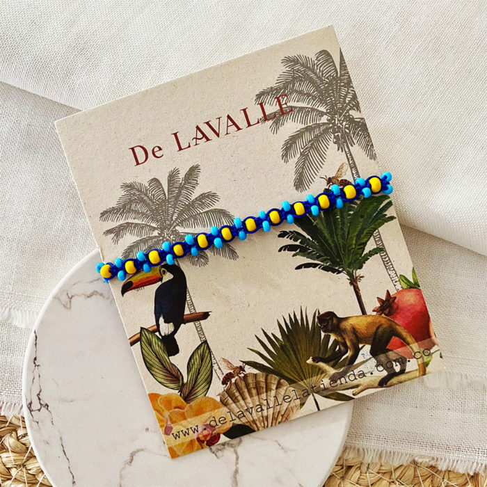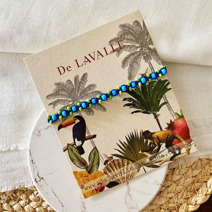 Manilla típica de playa pero a otro nivel. Base en macrame de micro cordon de seda intercalada con chaquiras checas #6 y #8 de diferentes tonos. Sistema de nudo corredizo para ajuste. MEDIDAS: Tamaño estándar, manilla con nudo para juste en tamaño. COLECCIÓN: LA COSTA. El 7 es considerado un número mágico porque se compone del sagrado número 3 y del terrenal número 4. Así, de esta manera, establece un puente entre el cielo y la tierra. Aseguran que para Pitágoras el 7 era “el número perfecto”; Dante Alighieri lo usaba en sus obras; y la Biblia lo menciona con frecuencia. Cuidados: Para una mayor durabilidad de nuestras piezas, se debe evitar el contacto con: Agua de Mar, piscina, cremas, perfumes, alcohol y cualquier tipo de líquidos que puedan deteriorarla. Cada vez que se use se recomienda limpiar con paño suave y seco. Producto hecho 100% a mano en Colombia. Producto hecho 100% a mano en COLOMBIA.